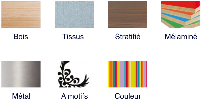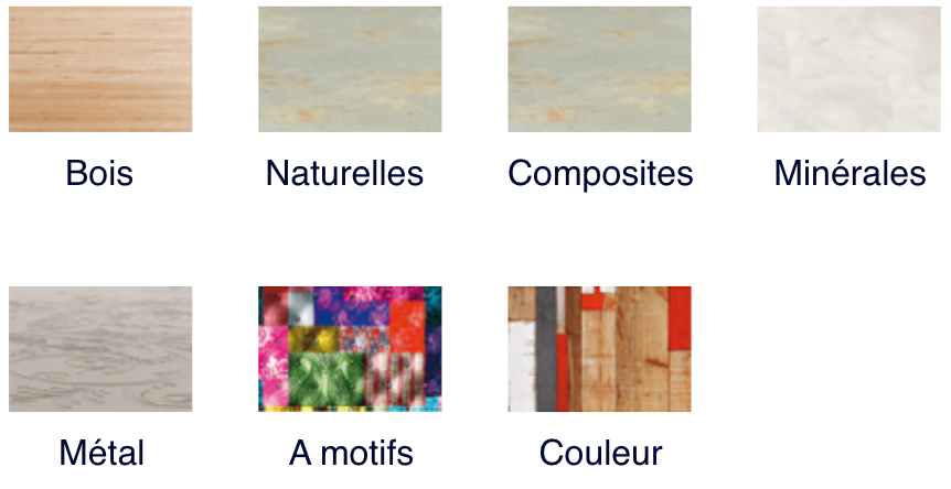 Réalisez votre propre modèle en choisissant les textures, les coloris et les teintes bois.