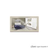 Armoire, minibar, vestiaire, porte-bagage ou bureau, tous les meubles de la chambre "CLASSIC" ont ici un ton beige, rehaussées par des pointes de taupes et de bleus dans le mobilier et la décoration.