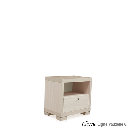 Entourée de tables de chevet, avec ou sans niche, l'ensemble lit est ici présenté dans des tonalités neutres beige rosé pour une atmosphère intemporelle mais douce et chic.