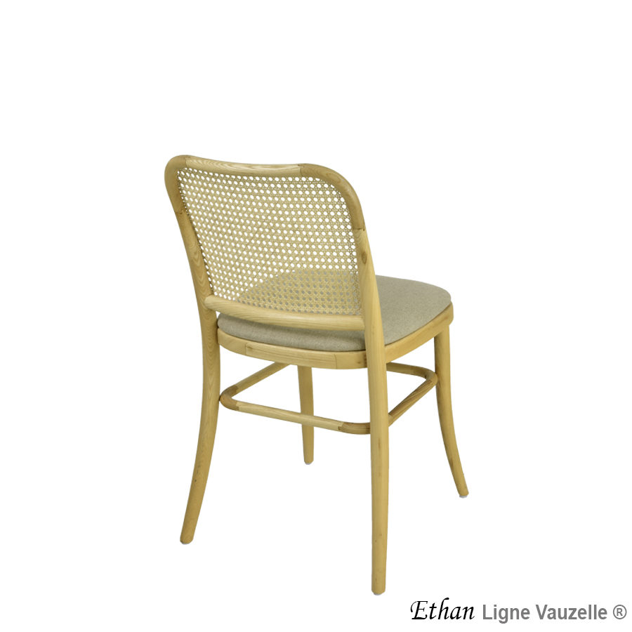 Dans cet espace de restauration baigné de lumière, le mobilier joue un rôle clé dans l’atmosphère conviviale et raffinée. Les chaises KOLINE, déclinées en version dossier garni et dossier bois, offrent une élégance intemporelle tout en assurant un confort optimal. À leurs côtés, les chaises ETHAN, avec leur assise moelleuse et leur dossier en cannage, apportent une touche contemporaine et chaleureuse.