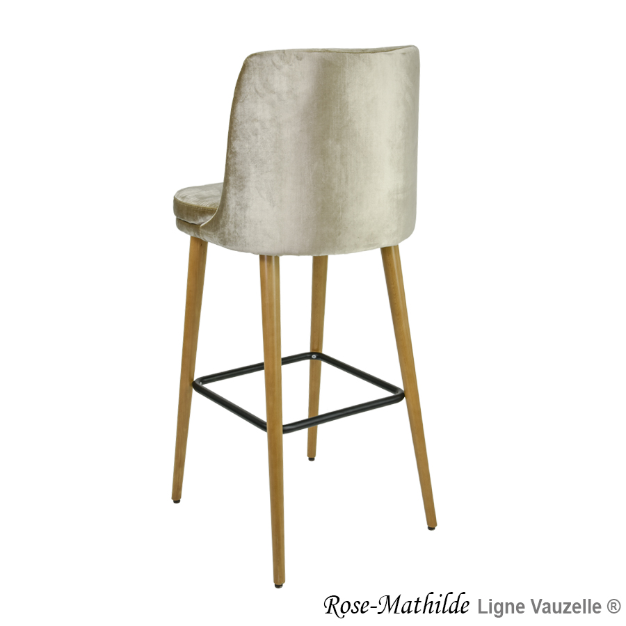 Tabouret "ROSE-MATHILDE" Avec Dossier, Pied Bois Conique Ht Ass. 80cm