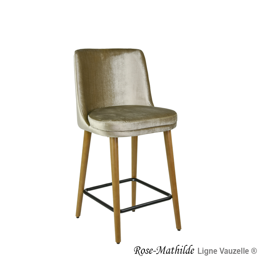 Tabouret "ROSE-MATHILDE" Avec Dossier, Pied Bois Conique Ht Ass. 63cm